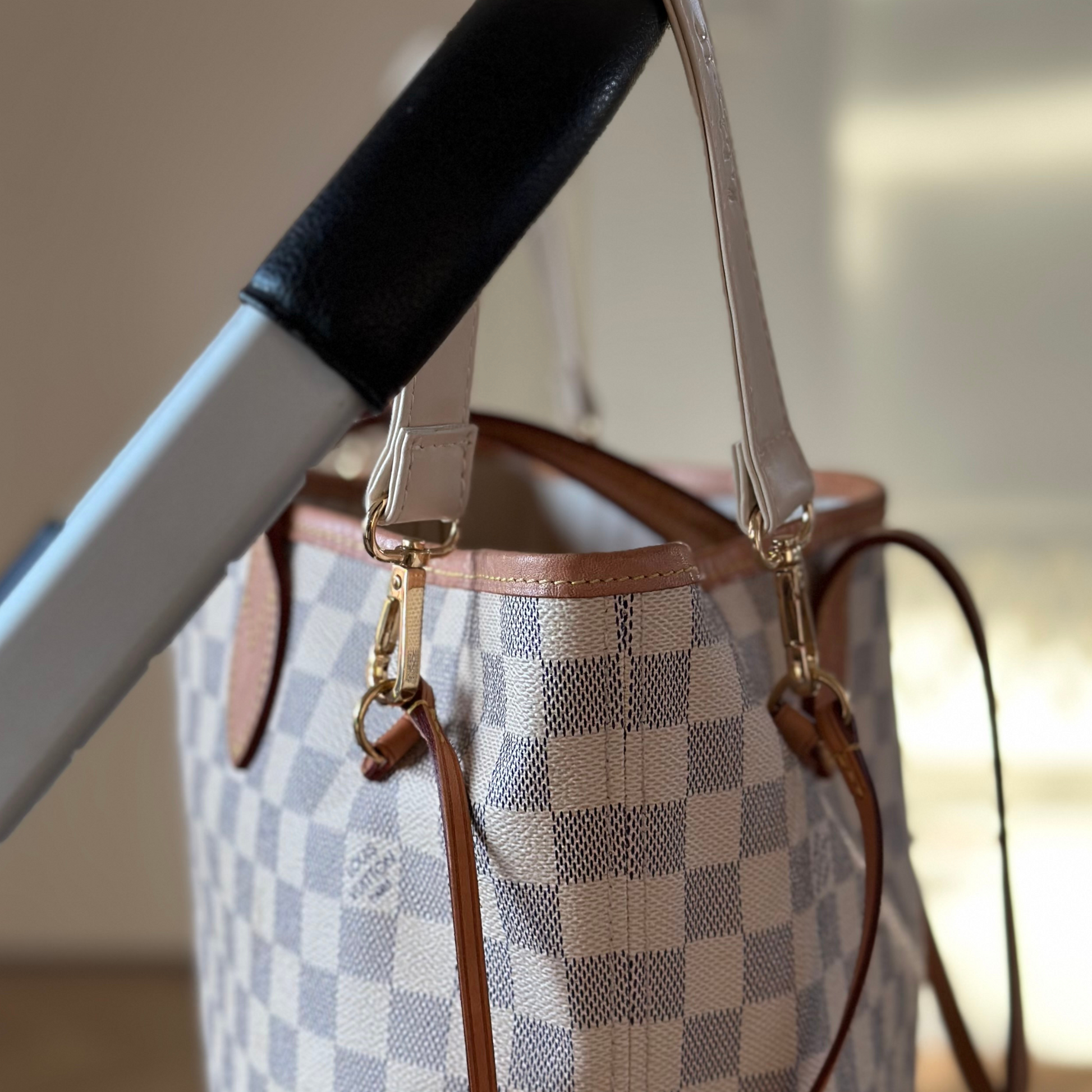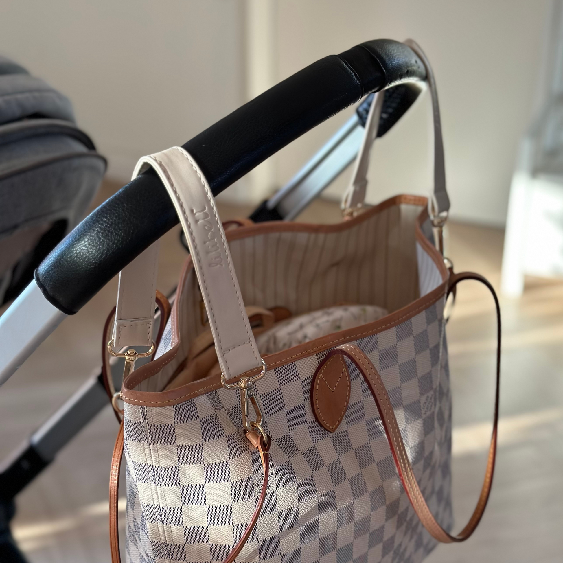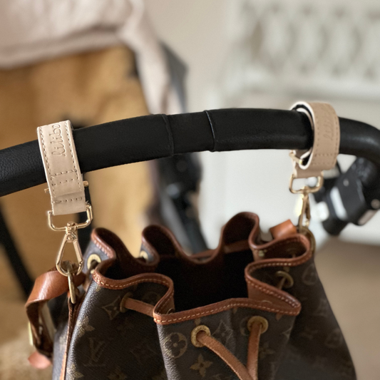 Verleihen deinem Elternsein eine stilvolle Note mit unseren exklusiven Kinderwagenhaken, die speziell für Designer Handtaschen, wie der Neverfull MM und GM, entwickelt wurden. Diese hochwertigen Haken sind aus veganem Leder gefertigt und bieten dir eine elegante und praktische Lösung, um deinen einzigartigen Stil auch als Frau und Mutter beizubehalten.